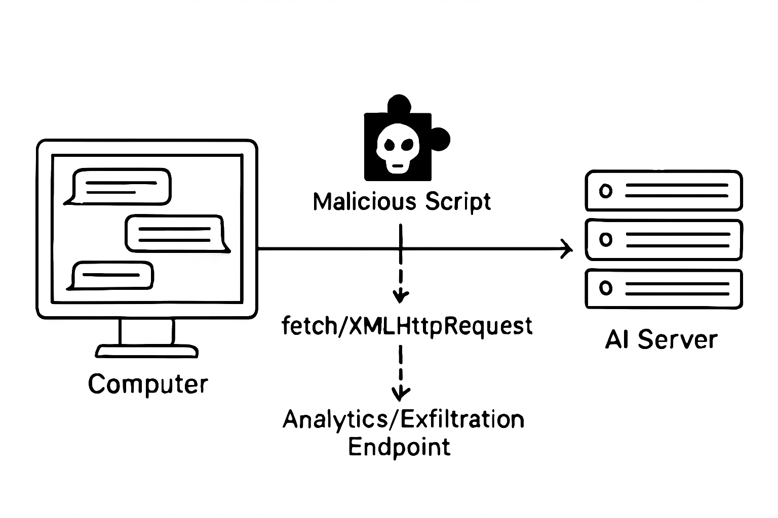 fetchorXMLHttpRequesthave been monkey-patched by code loaded from the extension’s specific Chrome ID, and monitoring forwindow.postMessageevents carrying structured chat data followed by POST requests to the known analytics domains.